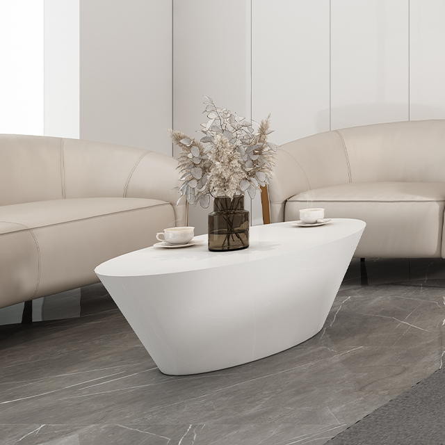 Белое блестящее окрашенноеСтол с уникальной текстурой, кофейный стол, зона приема, кофейный стол, диван