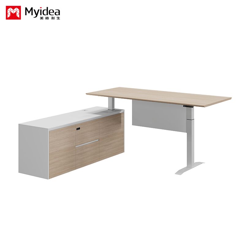 Настройка: Простой стол руководителя с бесшумным двухмоторным подъемным механизмом, стабильный и многофункциональный офисный дизайн, практичный стол