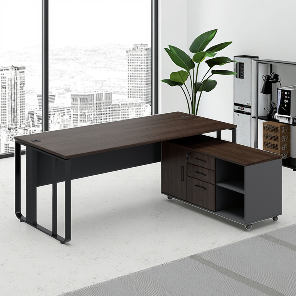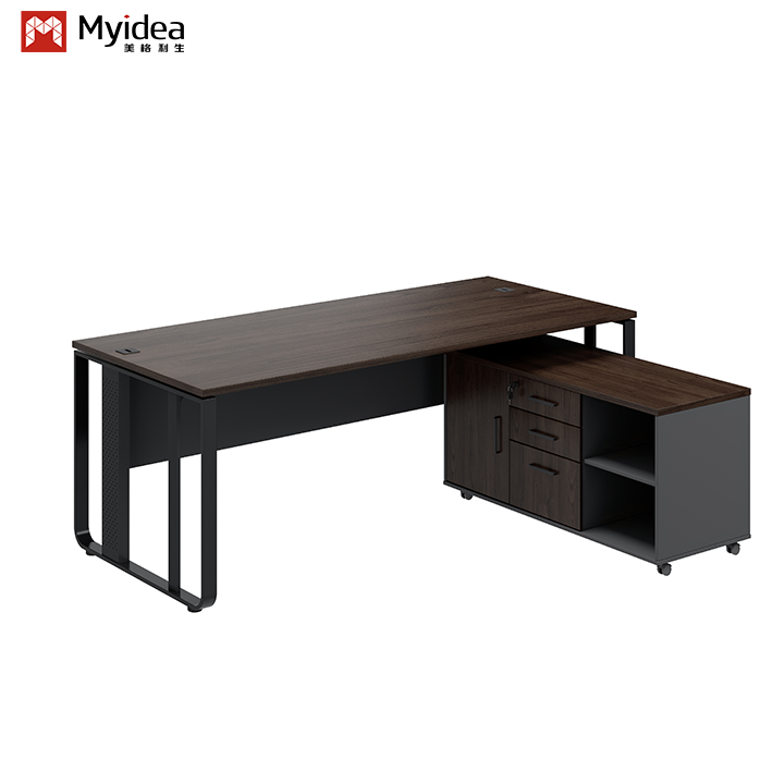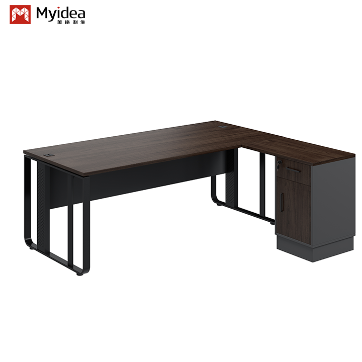 Современный роскошный письменный стол руководителя с дизайном на стальных ножках и тумбой для офисного здания