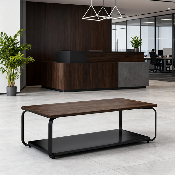Простой деревянный журнальный столик и стол для переговоров на стальных ножках и пластинах, экологичная коммерческая мебель от производителя