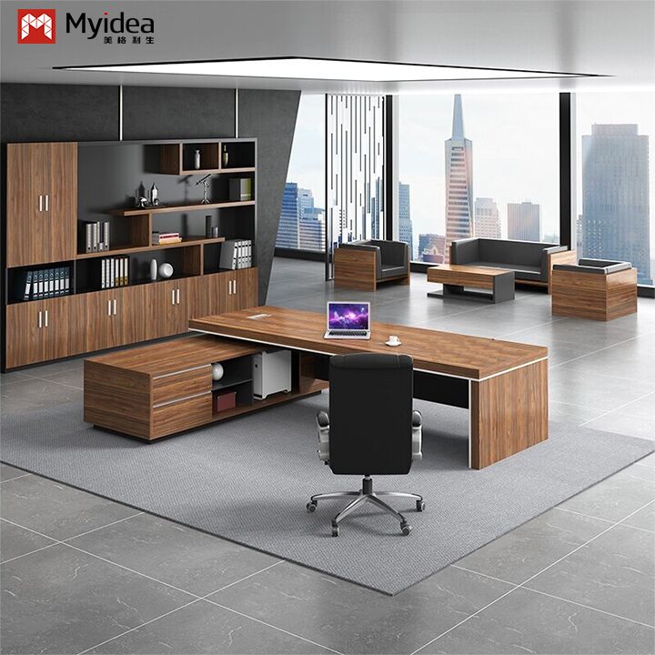 Современный экологически чистый L-образный рабочий компьютерный стол с подкабинетом для хранения больших объемов
