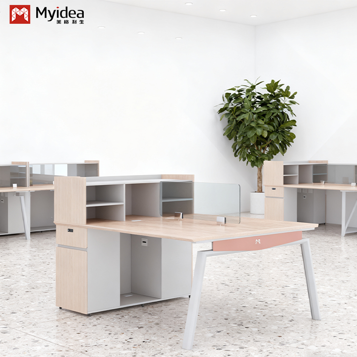 Современный офисный стол с стеклянным экраном и экологичной офисной мебелью для коммерческого использования
